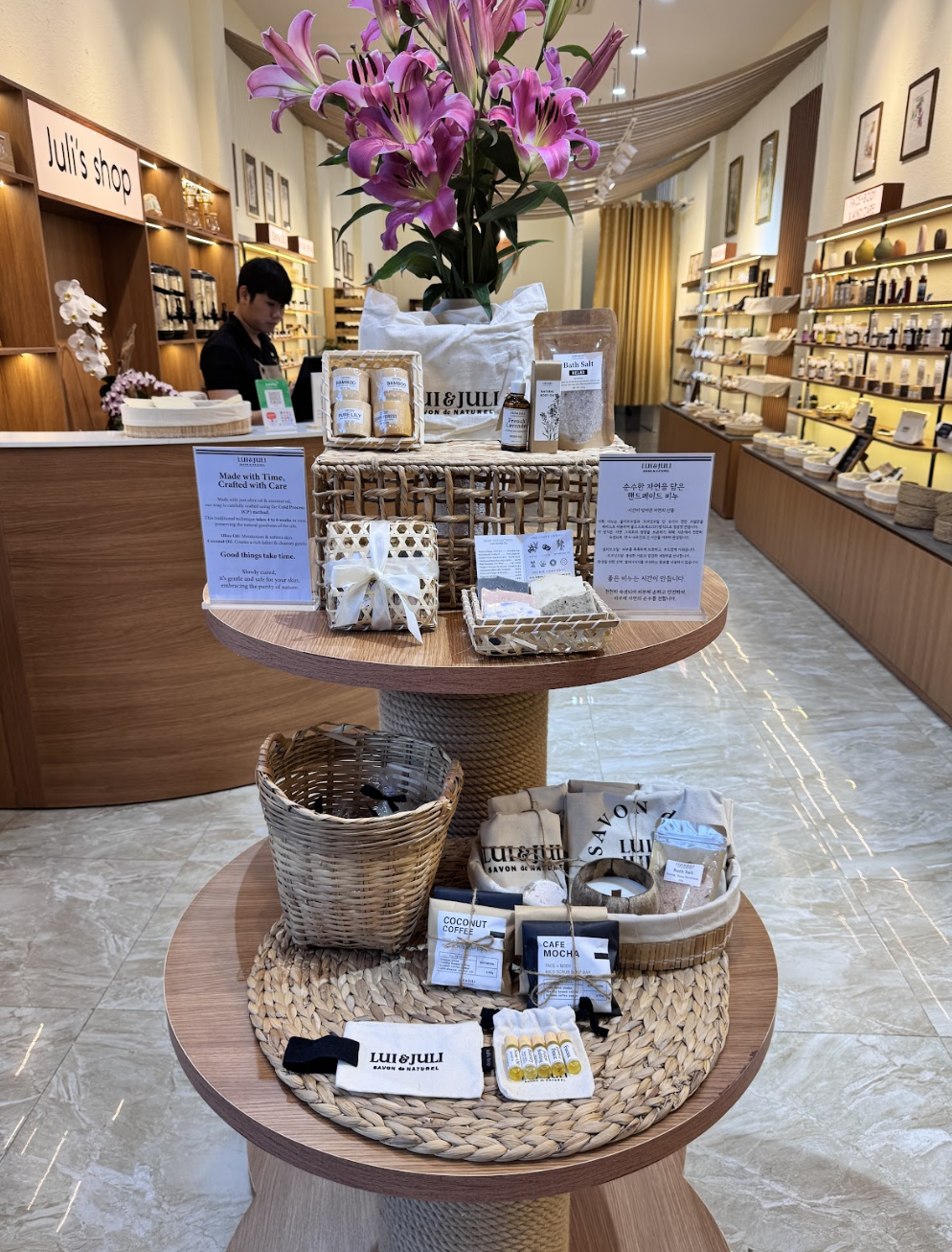 이번 나트랑 여행 선물 투어에서 만난 이곳은 판매되는 모든 제품이 100% 천연 재료로만 만들어진 나트랑 핸드메이드 전문점이에요. 매장에 들어서자마자 아늑한 분위기와 은은한 천연의 향기가 몸과 마음을 편안하게 해주더라고요.